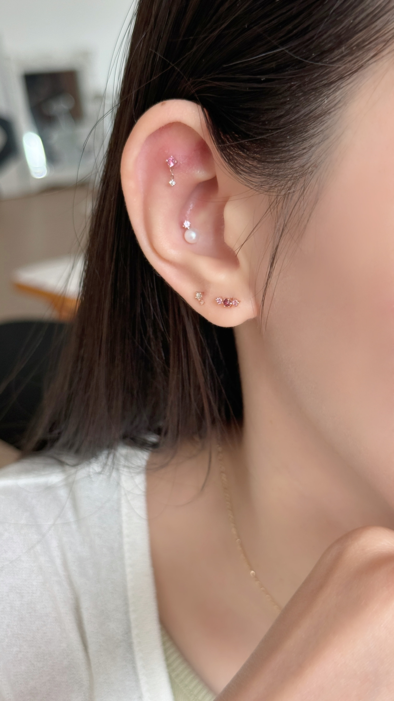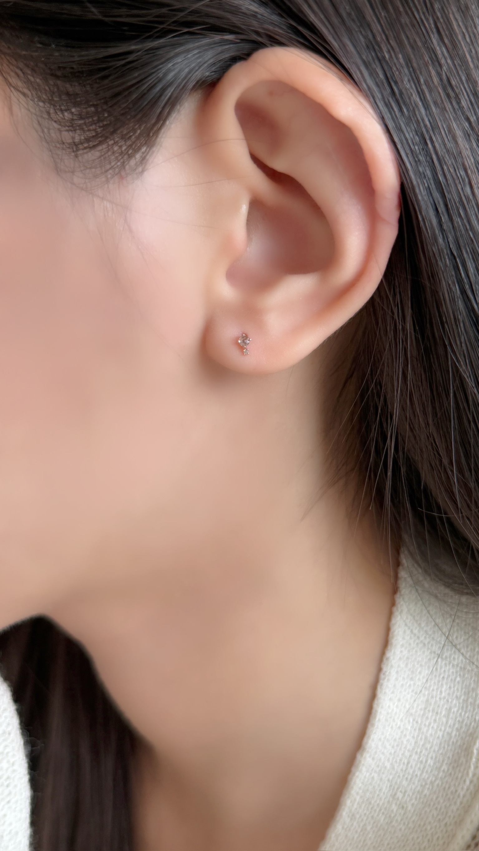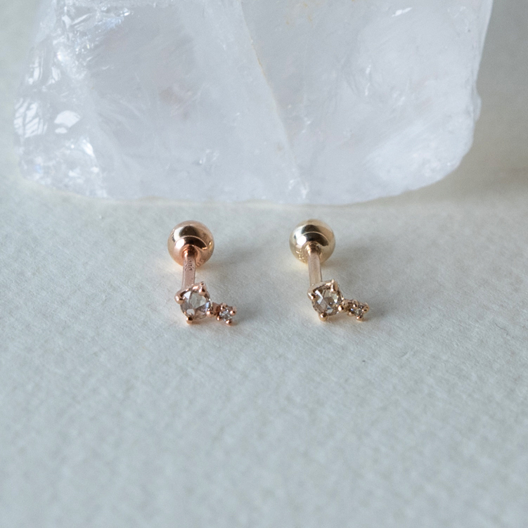 14K玫瑰切割棕白鑽轉珠耳環